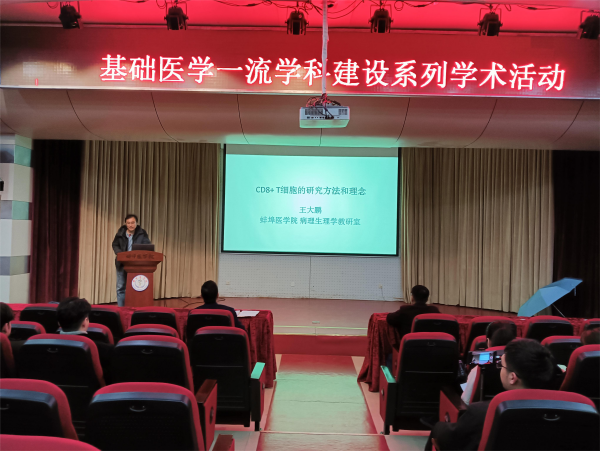 王大鹏就CD8+ T细胞的研究方法及进展做了专题讲座。王博士以新冠病毒感染为切入点,介绍了人体对病原微生物的免疫力形成过程和机理,重点介绍了T细胞介导的细胞免疫,以自己开展Runx3调控记忆性CD8+ T细胞分化的分子机理的研究为线索展示了CD8+ T细胞的研究方法和理念。通过文氏图、热图和火山图形象讲解了生物信息学研究的原理和应用。王博士用精彩的动画和精美的PPT给在场师生上了一堂生动的免疫学课程,并为大家今后开展相关研究拓展了视野。
