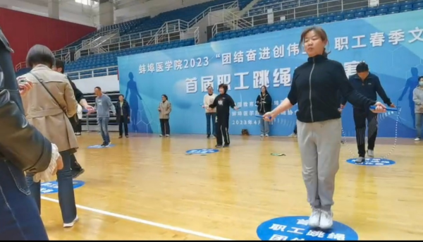 4月8日上午,蚌埠医公司2023年“团结奋进创伟业”职工春季文体月首届职工跳绳团体赛在龙湖体育馆开赛。公司派出10名运动员组成代表队参赛,经过3个项目的激烈角逐,公司教师斗志昂扬,努力拼搏,最终以优异成绩取得团体赛第一名。