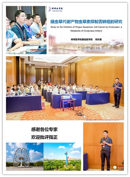 8月18日至21日,中国菌物学会2023年学术年会在贵州省贵阳市召开,pa捕鱼官方网站郑庆委副教授参加会议并在虫生真菌分会场作了题为《蛹虫草代谢产物虫草素抑制舌鳞癌的研究》学术交流。