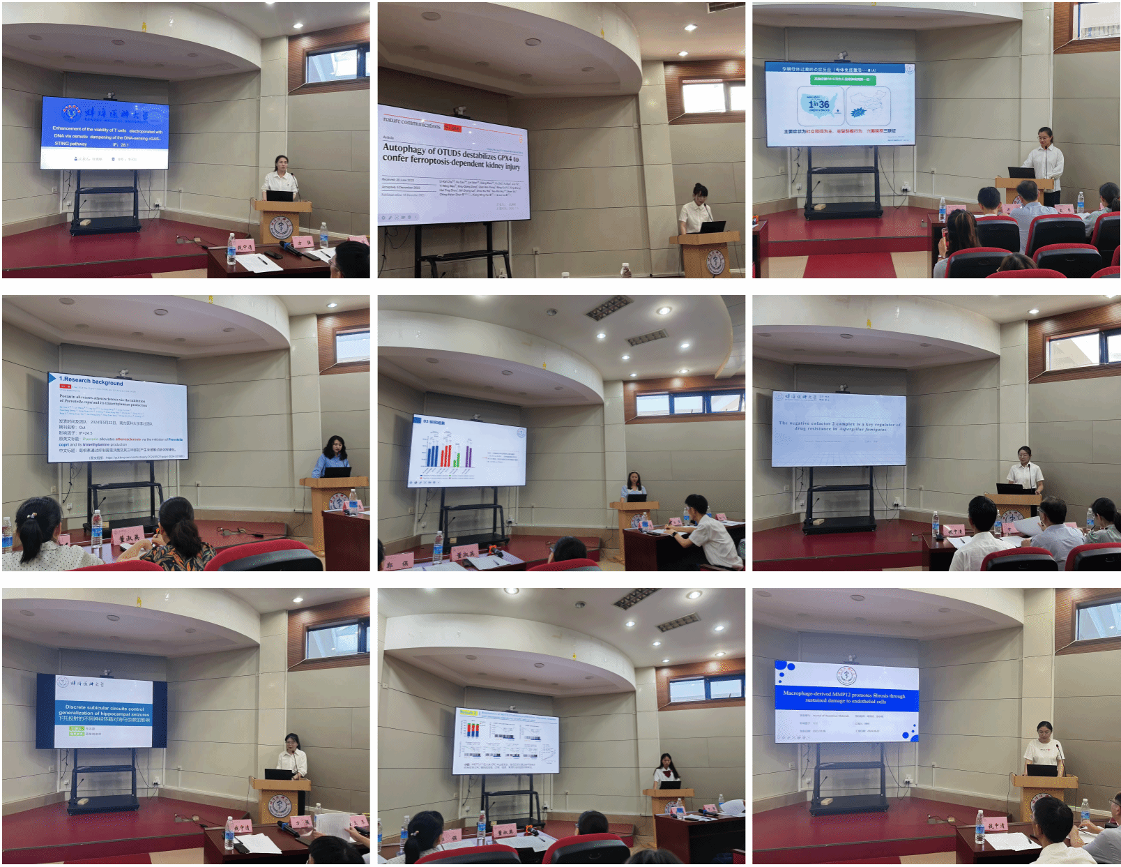 本次活动分为初赛和决赛两个阶段。2022级和2023级共有49名研究生报名参加初赛并线上提交材料。经过专家遴选,来自各学科的9名研究生脱颖而出晋级决赛。在现场报告环节,参赛选手以饱满的热情从作者背景、研究方法和思路、研究局限性以及对自己课题的启发等角度详细解读本领域文献,并回答了五位专家评委的提问。专家评委们对同学们的汇报进行了点评,指出了存在的问题及阅读文献应注意事项,同时也给同学们分享了各自的文献阅读经验。在评委点评环节,科研处处长钱中清教授首先对同学们的表现给予高度评价,强调了阅读文献的益处:解决科研困境,寻求科研灵感,培养科研素养;最后建议同学们要读经典、读“真科研”,读深悟透。经过激烈角逐,杜娜娜和张淋淋获得一等奖,韩柯、马一丹和孙冰静获得二等奖,胡莹、吴静、韩瑜颖和王若涵获得三等奖。