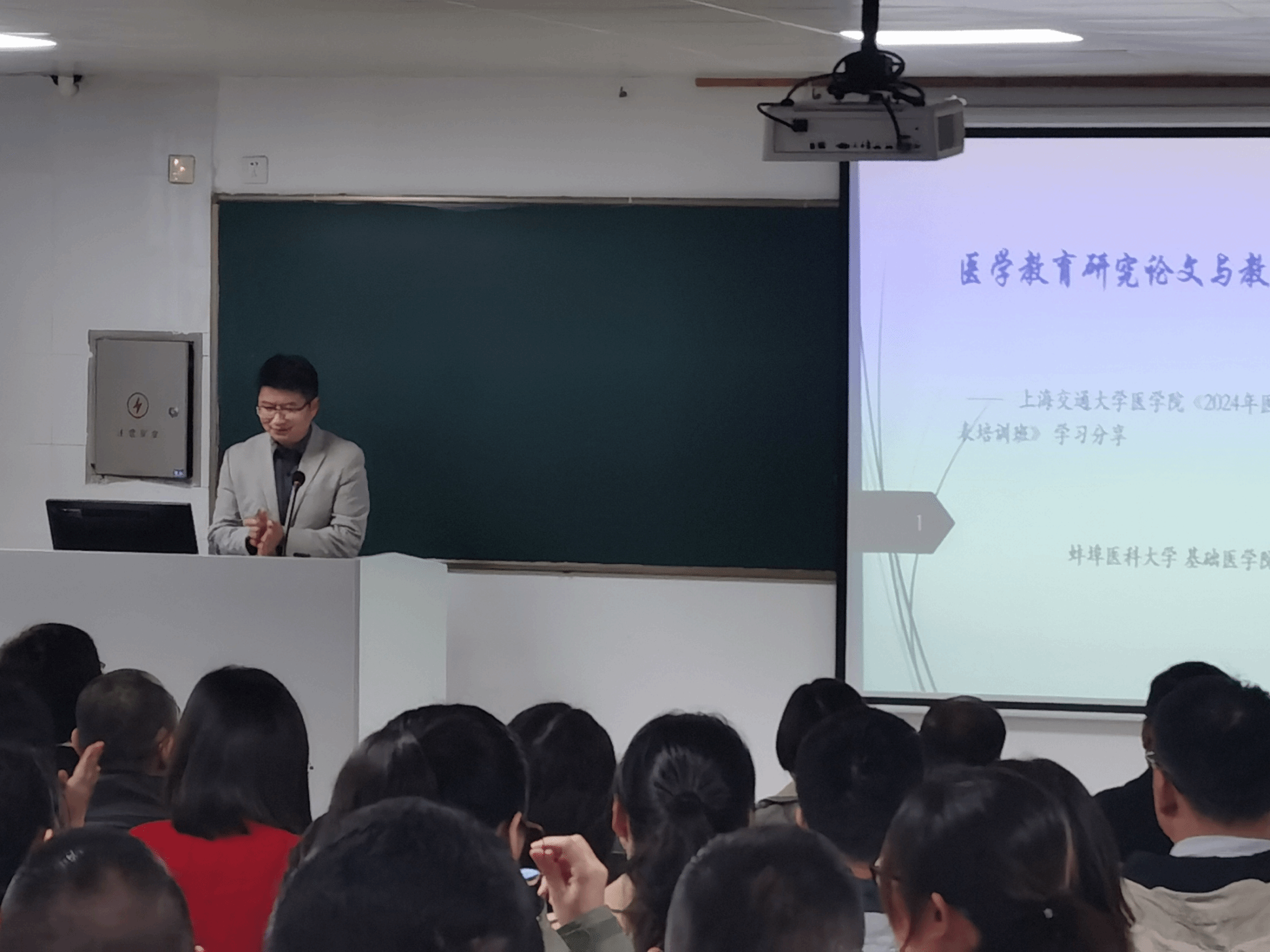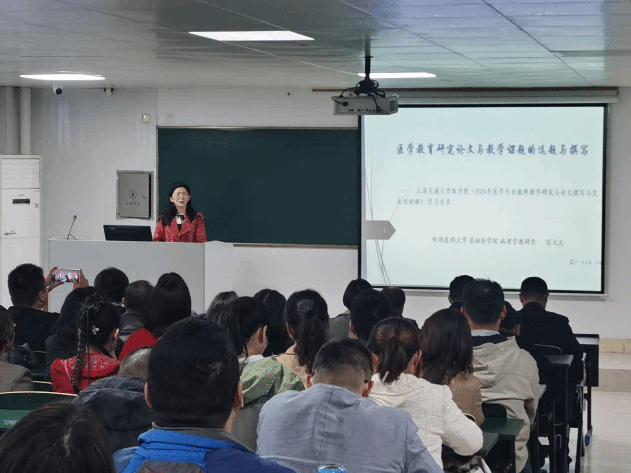 为继续推动与pa捕鱼官方网站交流,切实提高教师教学研究能力和专业素养,pa捕鱼官方网站于11月6日在实验教学楼F座210多媒体教室开展pa捕鱼官方网站《2024年医学专业教师教学研究与论文撰写与发表培训班》 学习成果分享交流会。会议由pa捕鱼官方网站副经理赵士弟主持,前往pa捕鱼官方网站培训的病理学教研室宋文庆副教授进行学习成果分享交流,pa捕鱼官方网站全体教师参加。